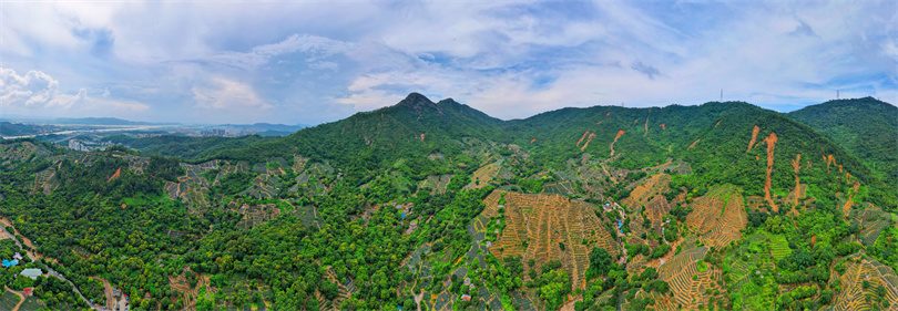 神灣菠蘿產(chǎn)業(yè)園,丫髻山及附近的菠蘿種植場(chǎng)如一塊塊梯田點(diǎn)綴其間。(攝影|余兆宇)