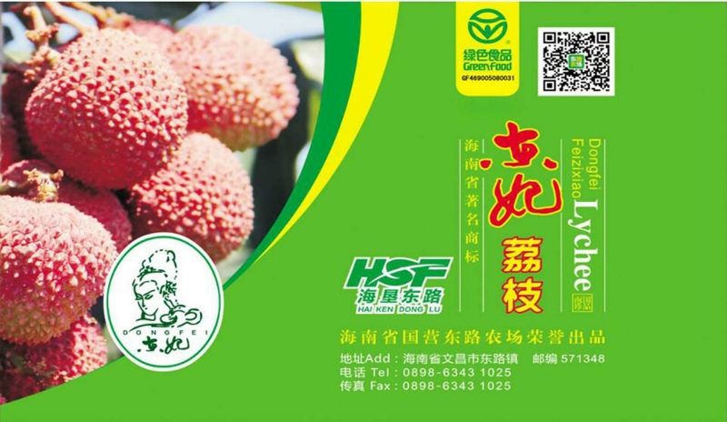 產(chǎn)品特色:荔枝生產(chǎn)是東路農(nóng)場(chǎng)公司品牌主打產(chǎn)業(yè)之一,也是海南地區(qū)荔枝的重要產(chǎn)區(qū)之一。 “東妃”牌荔枝1992年從廣東東莞引進(jìn),現(xiàn)發(fā)展面積已達(dá)1.05萬畝,其中荔枝標(biāo)準(zhǔn)化基地696.6畝,土壤農(nóng)藥殘留量、空氣質(zhì)量、水源等指標(biāo)均符合國家規(guī)定標(biāo)準(zhǔn),利用“生物導(dǎo)彈”“高效多功能殺蟲平臺(tái)”等技術(shù)手段,防治荔枝害蟲,減少化學(xué)農(nóng)藥的污染。2002年,注冊(cè)“東妃”牌荔枝商標(biāo),同年被海南省農(nóng)業(yè)廳確認(rèn)為無公害農(nóng)產(chǎn)品產(chǎn)地認(rèn)證,2008年通過中國綠色食品發(fā)展中心認(rèn)定為“綠色食品”A級(jí)產(chǎn)品、獲得“海南著名商標(biāo)證書”,2014年獲國家農(nóng)業(yè)部產(chǎn)品質(zhì)量安全中心“無公害農(nóng)產(chǎn)品證書”,2015年被海南省農(nóng)業(yè)廳認(rèn)定為“海南名牌農(nóng)產(chǎn)品”,2017 年榮獲良好農(nóng)業(yè)(GAP)認(rèn)證。