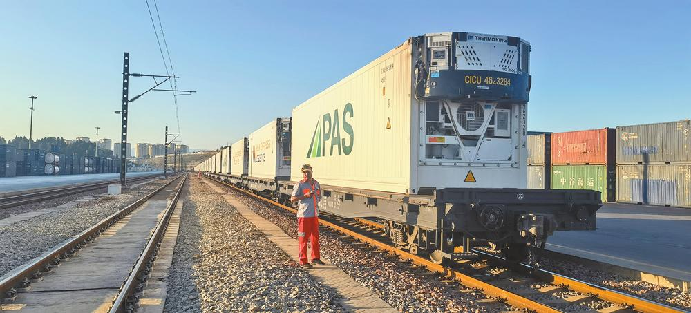 滿載泰國(guó)榴蓮的中老鐵路“瀾湄快線”班列抵達(dá)中鐵聯(lián)集昆明中心站。 本報(bào)記者 胡曉蓉 攝