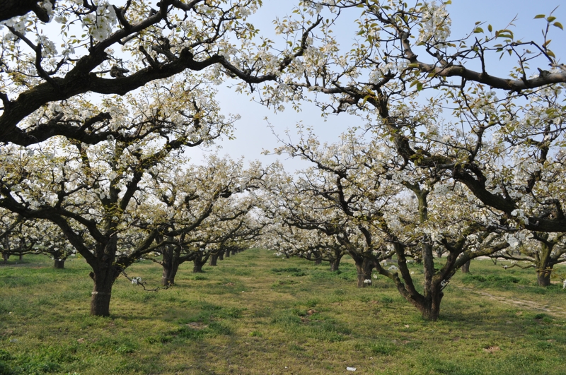 碭山,位于蘇、魯、豫、皖四省交界處,素有“世界梨都”之稱,每年陽春三月,春和景明時節(jié),碭山大地萬物復(fù)蘇,故黃漲綠,數(shù)十萬畝梨花吐蕊綻蕾,競相盛開。放眼環(huán)顧,雪堆云涌,銀波瓊浪,沃野千頃,一片花海,景象蔚為壯觀。到八月中秋,遍地金珠墜地,碭山又是果的世界,田間地頭又成了果山果海,到處人歡車鳴,芳香鋪地。置身其間,徜徉園圃,品嘗酥梨似蜜之甘甜,令人樂不思?xì)w,流連忘返。始建于1955年的安徽農(nóng)墾碭山果園場就坐落在這里。