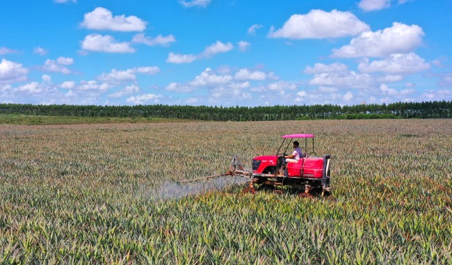 綠色種養(yǎng),守護產(chǎn)業(yè)可持續(xù)發(fā)展底色。綠色種植優(yōu)生態(tài),精準(zhǔn)管護提品質(zhì)。農(nóng)場以科技興農(nóng)為抓手,組建黨員技術(shù)攻關(guān)小組,聚焦菠蘿種植關(guān)鍵環(huán)節(jié)優(yōu)化服務(wù)模式,大力推進機械化與數(shù)字化融合,引進新型菠蘿種植機、北斗導(dǎo)航系統(tǒng)、植保無人機等設(shè)備,以科技賦能升級貼身經(jīng)營質(zhì)效,推動菠蘿種植向高效綠色方向轉(zhuǎn)型。黨員技術(shù)團隊牽頭搭建水肥一體化灌溉系統(tǒng)、機械化施有機肥、套袋護果等田間管護服務(wù)鏈條,根據(jù)菠蘿生長周期精準(zhǔn)調(diào)配水肥,實現(xiàn)每畝節(jié)水20%、節(jié)肥30%,為產(chǎn)業(yè)可持續(xù)發(fā)展筑牢綠色根基。