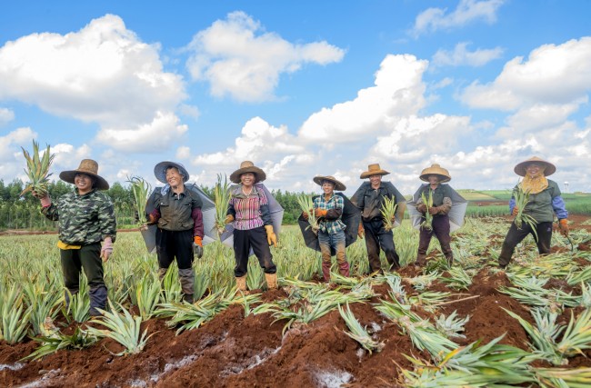規(guī)模種植,夯實產(chǎn)業(yè)鏈基本盤。將聯(lián)農(nóng)帶農(nóng)、增收致富作為黨建品牌建設(shè)的落腳點,為種植戶提供從種苗供應(yīng)、田間管理到產(chǎn)品銷售的全鏈條貼身幫扶,構(gòu)建“公營示范、職工跟進”的規(guī)?;N植格局。黨員先鋒崗在菠蘿種植黃金期帶頭攻堅,在鞏固3000畝公營菠蘿種植基地基礎(chǔ)上,新增2000畝公營種植片區(qū),全力沖刺墾區(qū)“一萬畝”公營菠蘿目標(biāo)。主動開展貼身對接服務(wù),為各基地負責(zé)人、職工農(nóng)戶提供種植規(guī)劃、土地協(xié)調(diào)等支持,每年供應(yīng)新品種菠蘿種苗1000萬株以上,保障了公營基地、職工和周邊農(nóng)戶的種苗需求,成功帶動職工擴種菠蘿5600畝。