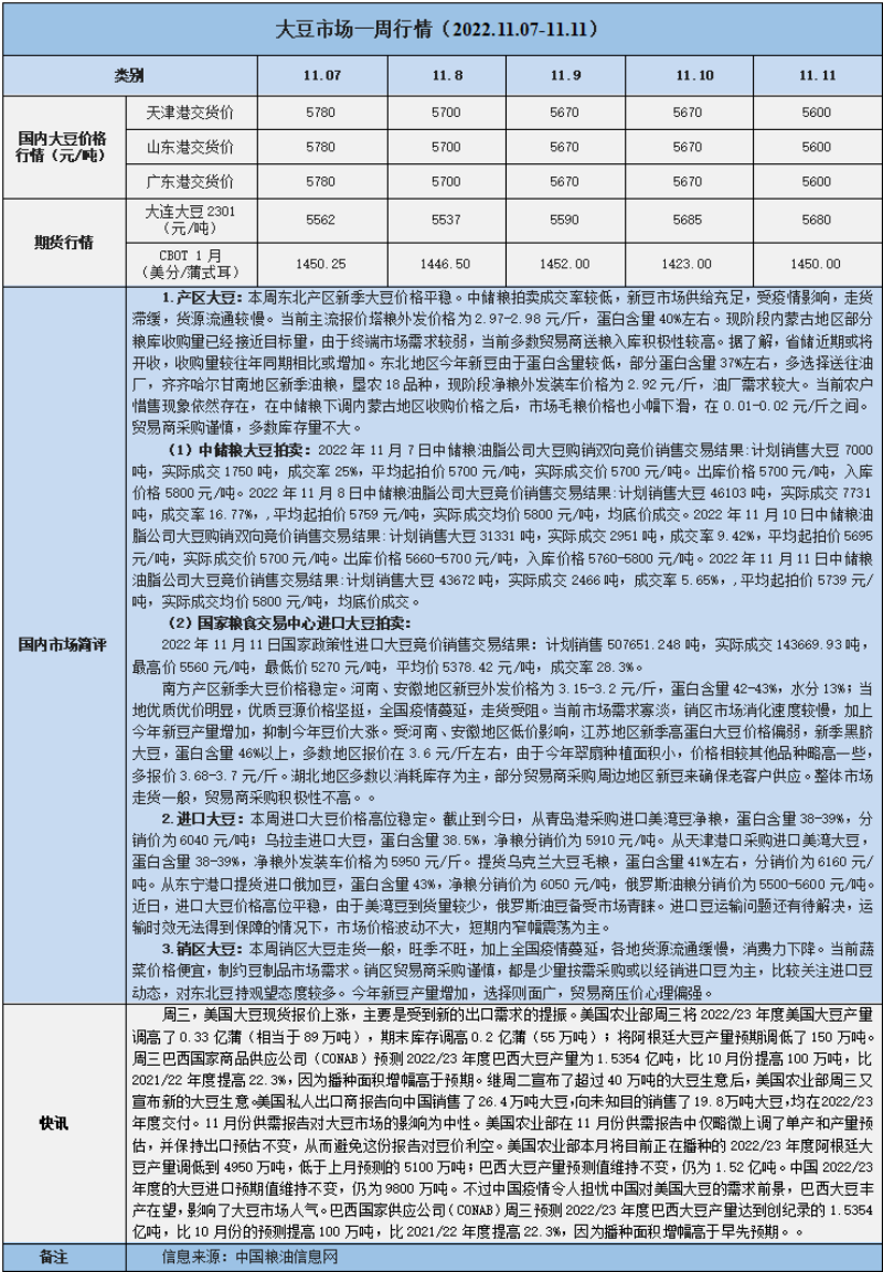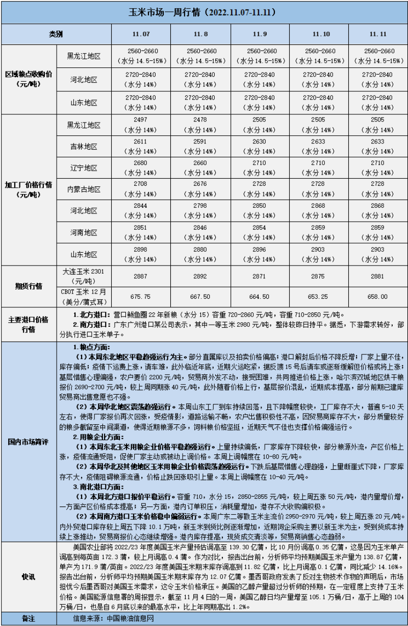 天然橡膠、大豆、玉米市場(chǎng)一周行情(2022.11.07-11.11)
