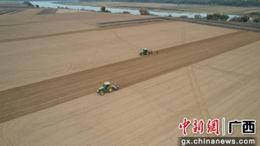 2月10日,記者來(lái)到象州縣運(yùn)江鎮(zhèn)芽村的千畝連片甘蔗種植基地,2臺(tái)安裝有北斗導(dǎo)航輔助駕駛系統(tǒng)的拖拉機(jī)在蔗田里來(lái)回穿梭,一次性完成開溝、下種、施肥、覆土等工序。