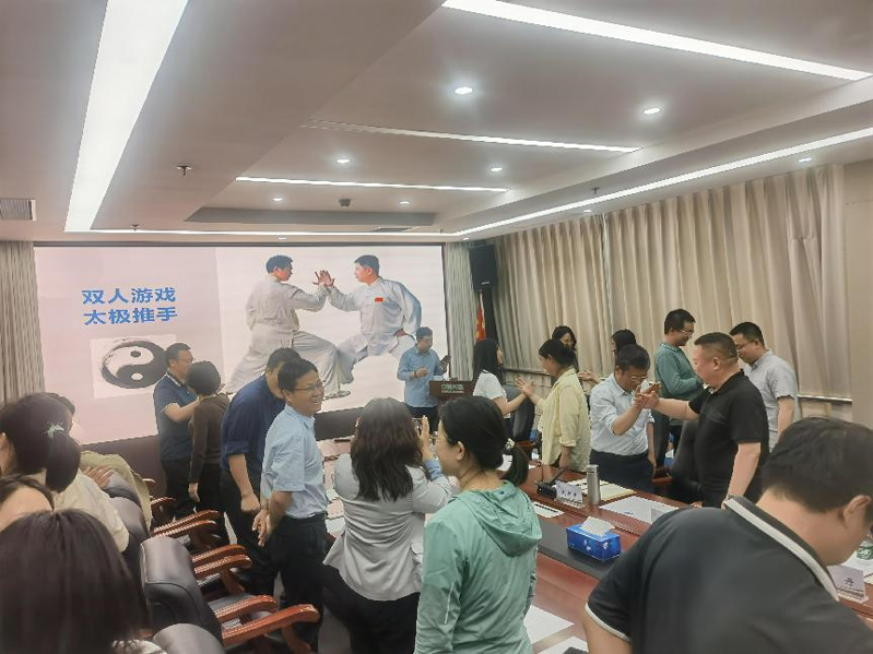 張旸以“親密關(guān)系構(gòu)建與壓力管理”為核心,結(jié)合親密關(guān)系、家庭溝通、壓力管理等典型場景,通過案例講解與互動問答,揭示了和諧人際關(guān)系、高效溝通和壓力紓解等方面的內(nèi)在邏輯。建議從理解差異、調(diào)整認知、切換關(guān)系等方面推進家庭關(guān)系和諧以及工作效能提升。授課過程中,參會人員開展了“雙人拍手”、“雙人太極推手”等游戲,與教授互動交流,現(xiàn)場氛圍熱烈。參會職工普遍反映,講座兼具理論深度與生活溫度,為破解“工作家庭兩難”提供了可操作的解決方案。
