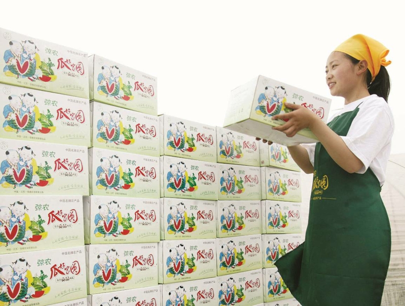 農(nóng)場黨委以問題為導(dǎo)向,成立西瓜產(chǎn)業(yè)發(fā)展領(lǐng)導(dǎo)小組,確立西瓜產(chǎn)業(yè)總體發(fā)展思路,將大棚西瓜的年種植面積穩(wěn)定在1萬畝左右,同一塊土地間隔4~5年種植一次大棚西瓜。“水旱輪作種植”模式不僅西瓜品質(zhì)、產(chǎn)量上去了,而且病蟲害少了,土壤結(jié)構(gòu)改善了。協(xié)會制定并下發(fā)了標(biāo)準(zhǔn)化技術(shù)規(guī)程、《無公害、綠色西瓜生產(chǎn)手冊》,出臺了“關(guān)于加強環(huán)境保護建設(shè)生態(tài)農(nóng)場工作的意見” 和“關(guān)于做好無公害、綠色農(nóng)產(chǎn)品質(zhì)量追溯工作的意見”。西瓜產(chǎn)業(yè)從低水平、無序化的一家一戶式生產(chǎn)向組織化、規(guī)?;?biāo)準(zhǔn)化、無公害、綠化、有機農(nóng)產(chǎn)品生產(chǎn)邁進。2002年注冊了“弶農(nóng)”牌商標(biāo),2008年獲得“中國名牌農(nóng)產(chǎn)品”、“江蘇名牌產(chǎn)品”等榮譽稱號,“弶農(nóng)”牌西瓜步入品牌化發(fā)展階段。2020年“弶農(nóng)”牌西瓜成功獲批江蘇省首批“江蘇精品”。