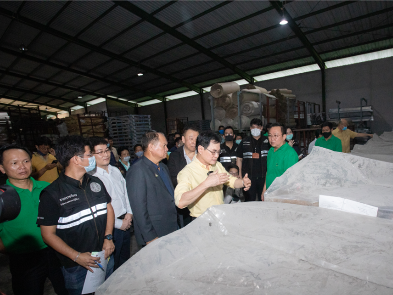 在工廠車間,朱林副總理參觀了公司生產(chǎn)線和公司成品倉(cāng)庫(kù),對(duì)泰華公司濃縮乳膠的二維碼追溯系統(tǒng)表示贊賞,對(duì)公司的5L等產(chǎn)品通過諸多國(guó)際知名企業(yè)認(rèn)證點(diǎn)贊,并提出泰國(guó)應(yīng)加大本地的橡膠使用量,積極拓展海外的銷售渠道,提升泰國(guó)天然橡膠的知名度和美譽(yù)度。