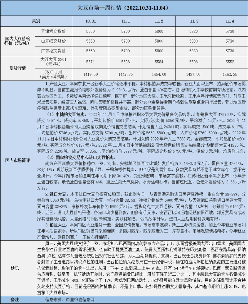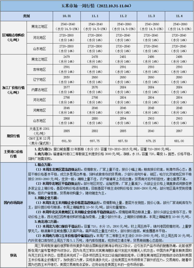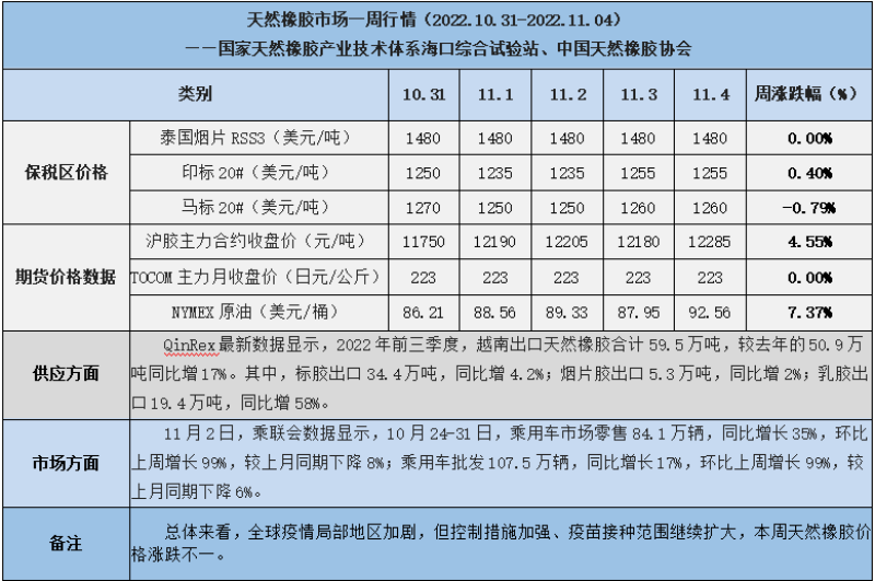 天然橡膠、大豆、玉米市場(chǎng)一周行情(2022.10.31-11.04)
