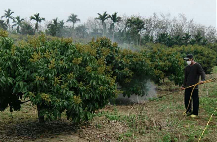二、成蟲羽化高峰期進(jìn)行施藥,噴殺荔枝蒂蛀蟲成蟲。推薦使用藥劑為:具有強(qiáng)觸殺作用的擬除蟲菊酯,或5%啶蟲脒乳油,或荔豐保,使用所推薦劑量進(jìn)行內(nèi)膛噴霧防治(見(jiàn)下圖)。