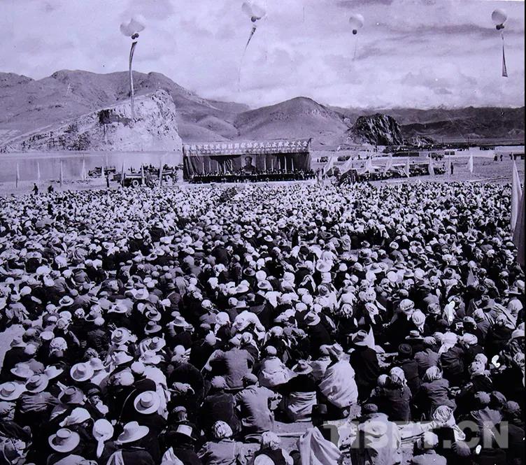 圖為林周農(nóng)場虎頭山水庫竣工大會 翻拍:王媛媛